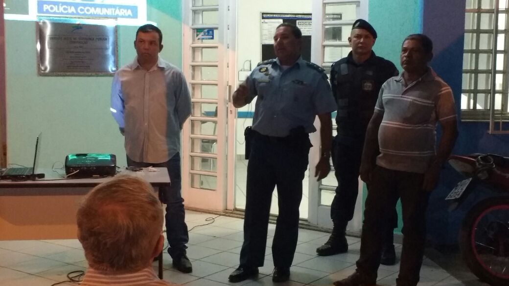 A reunião ocorreu nas instalações da Base Comunitária de Segurança, e contou ainda, com a presença do Assessor Militar do Prefeito, o senhor Ten. Cel. César Freitas Duarte, o vice presidente do Conselho Comunitário de segurança, o senhor Jorcilei, o vereador, André da farmácia, o senhor Salazar, o presidente do Conselho de segurança, o senhor Oswaldo Hermes Simões Filho, além de policias miliares e agentes da Guarda Municipal que atuam na Base Comunitária.