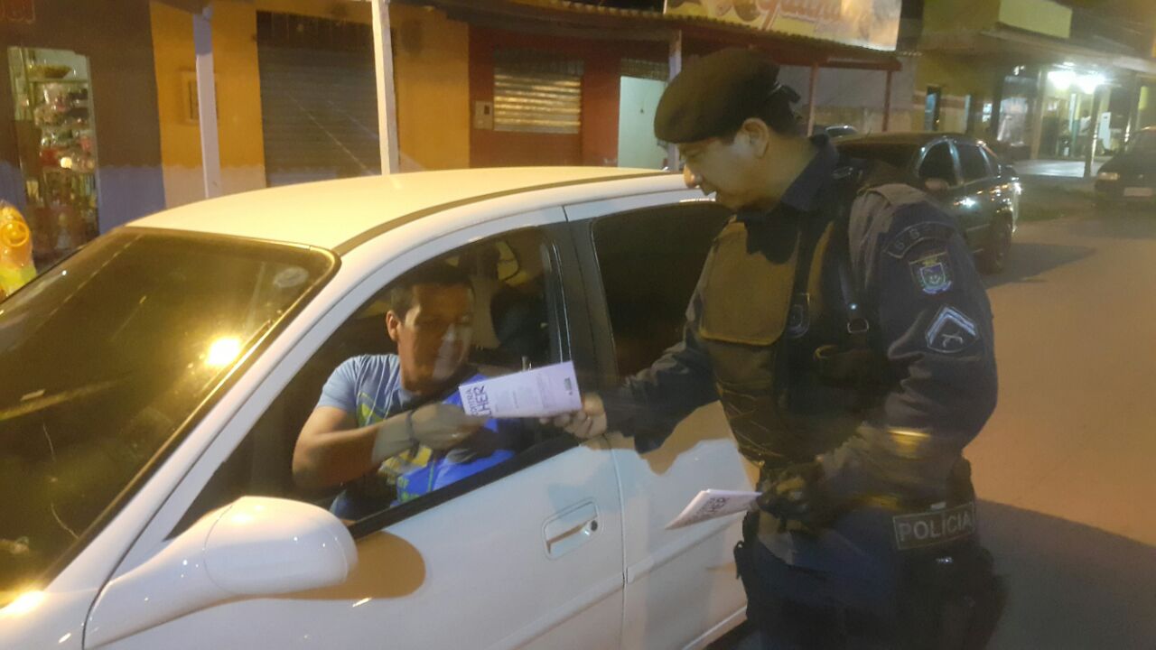 Corumbá (MS) – Sexta-feira (25), por volta das 19:00 horas, policiais militares da patrulha comunitária do 6º Batalhão PM, realizaram Blitz Preventiva, no combate à violência contra a mulher, em parceria com o Conselho Municipal dos Direitos da Mulher, na rua Ciríaco de Toledo, no bairro Nova Corumbá.
