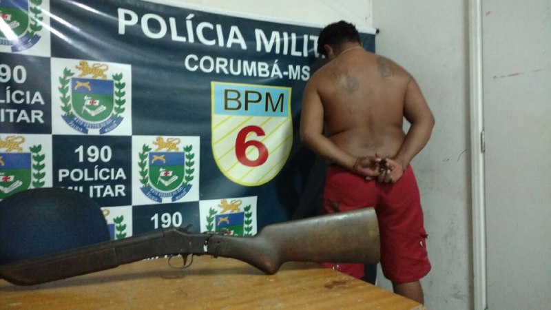 Ladário (MS) – Domingo (01), por volta das 19:00 horas, a equipe de rádio patrulha de Ladário realizava rondas ostensivas pelo bairro Alta Floresta II, quando foi acionada via CIOPS para deslocar nas proximidades do bairro Almirante Tamandaré, onde segundo informações, dois indivíduos estavam em um veículo Gol de cor branca portando uma arma de fogo, longa.