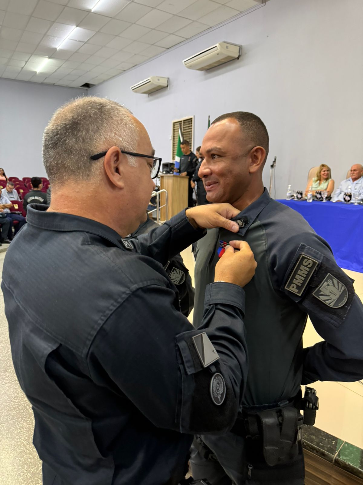 O tenente-coronel Adriano também fez uso da palavra e enfatizou o significado da medalha de tempo de serviço, destacando que a honraria simboliza não apenas o tempo dedicado à corporação, mas o compromisso, o profissionalismo e os excelentes serviços prestados pelos militares à sociedade sul-mato-grossense.