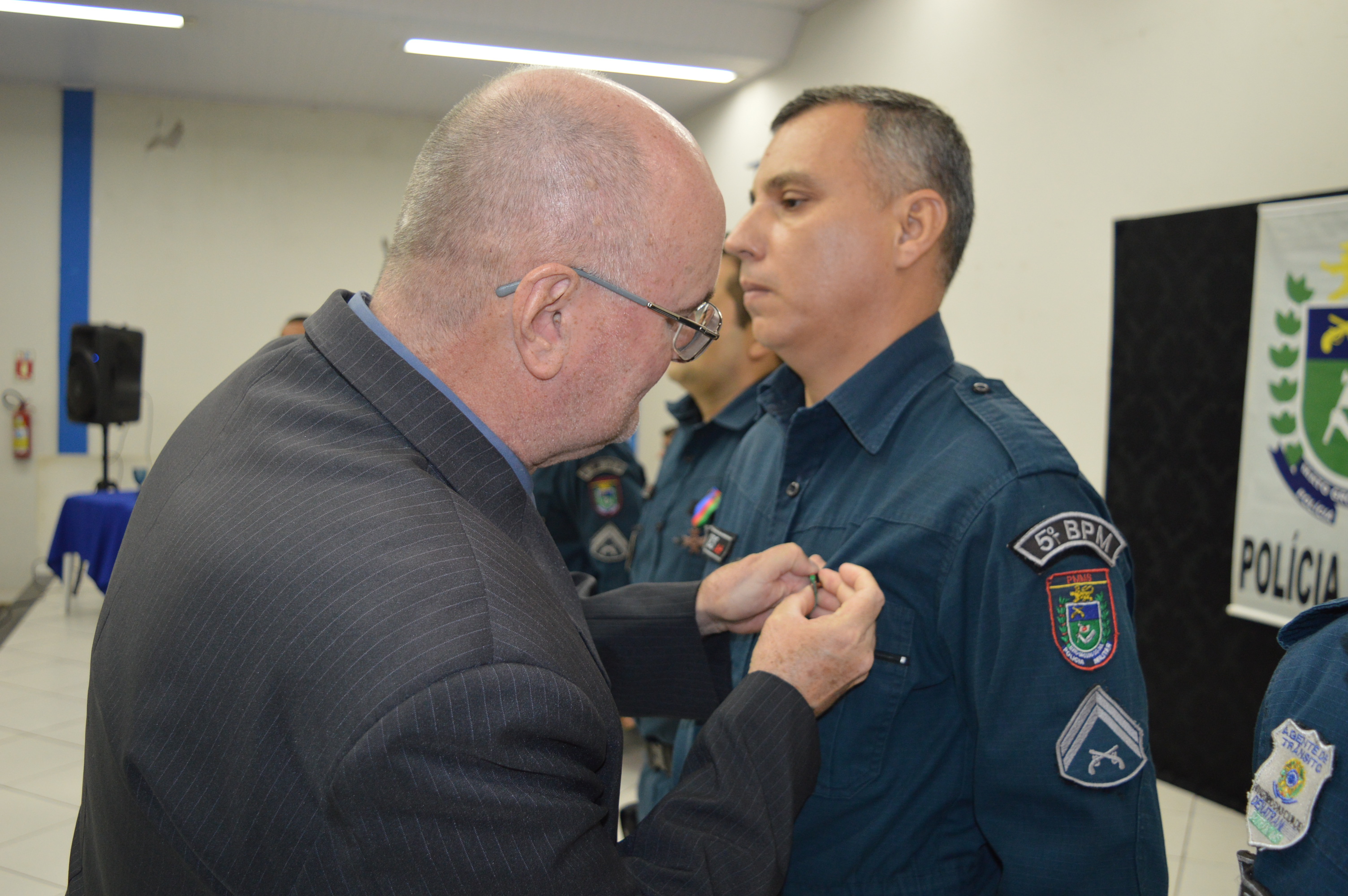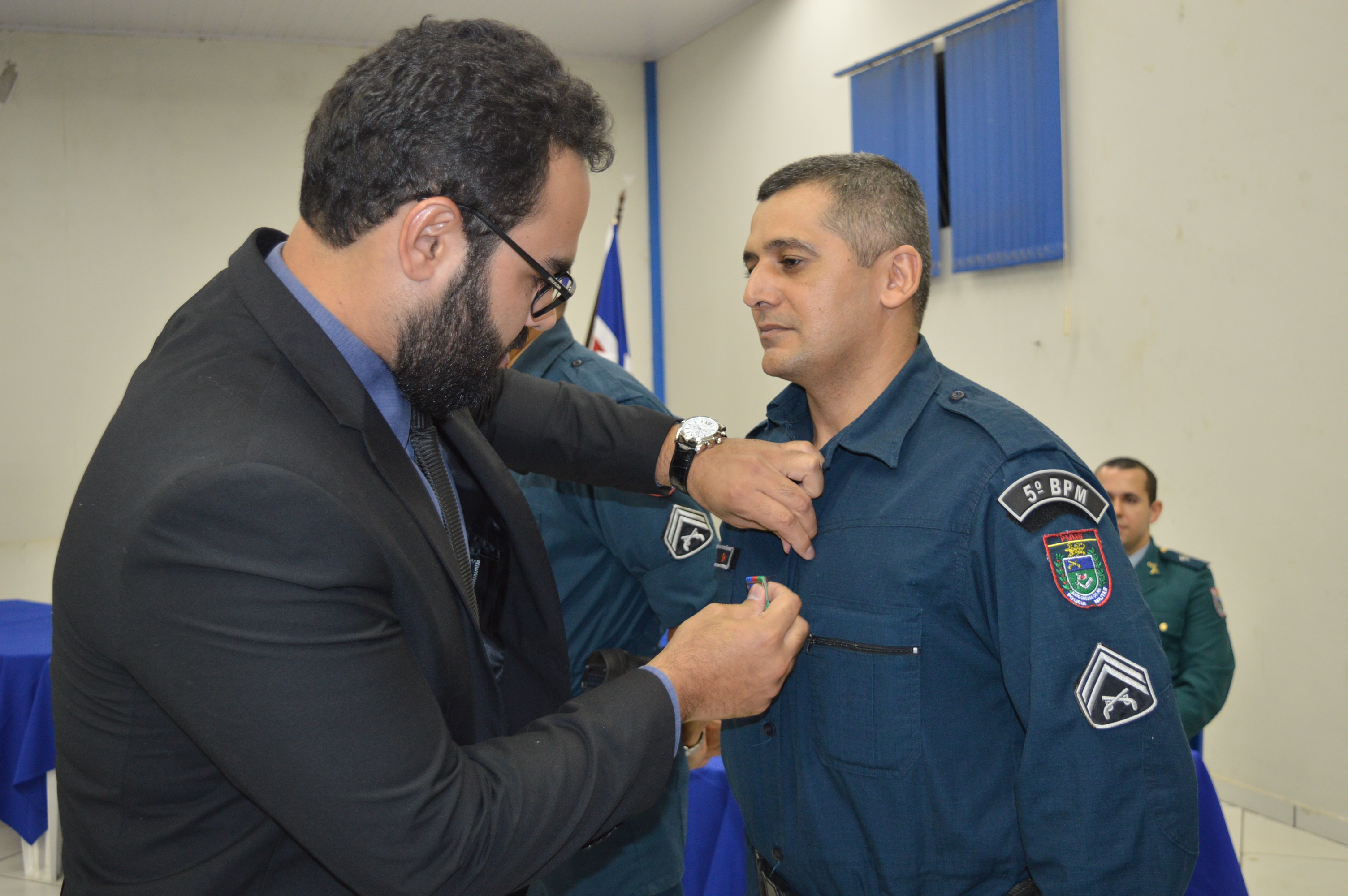 Para o Comandante do 5º BPM, Major PM Luiz César de Souza Herculano estar agraciando individualmente cada militar é uma forma de valorizá-los, uma vez que cada um desempenha o serviço com excelência. “É uma honra estar condecorando os militares, momento único vivido pelos policiais militares bem como dos familiares”, salientou o comandante.