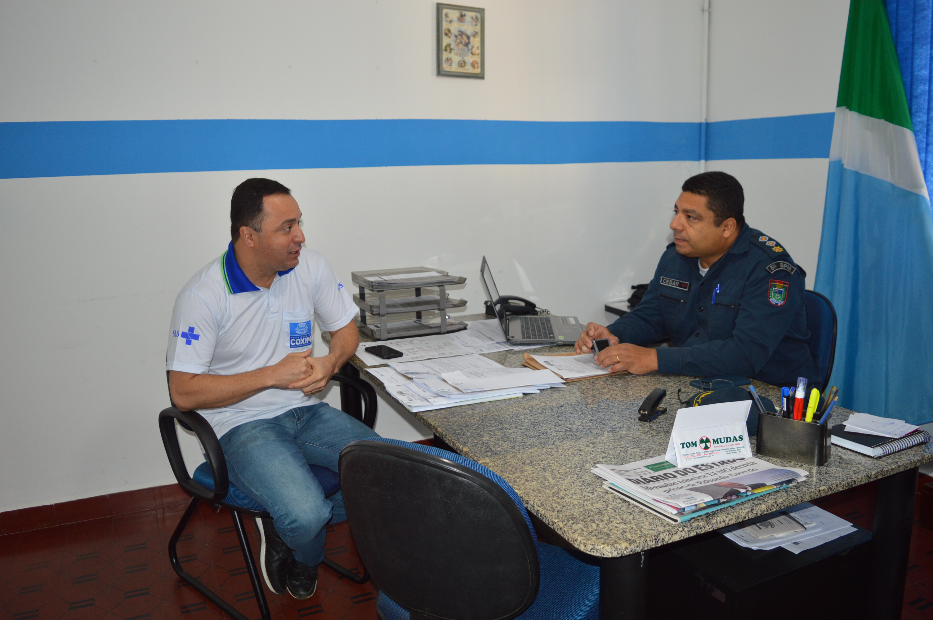 o evento contou com a presença do comandante do 5º BPM, Major Luiz César de Souza Herculano, do Secretário de Saúde, Sr. Franciel Oliveira, enfermeiros e policiais.