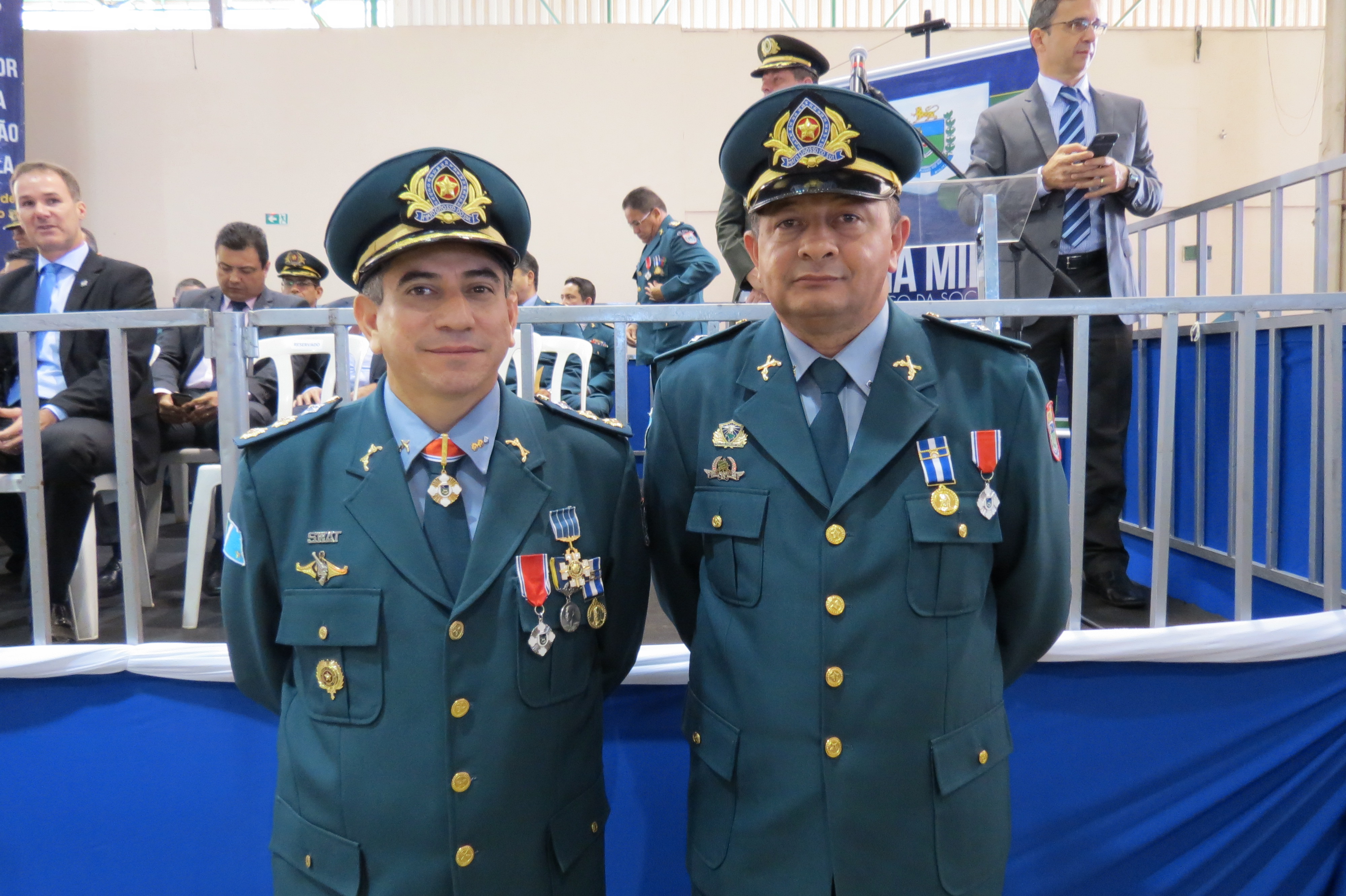 Estiveram, também na solenidade: o Secretário de Justiça e Segurança Pública, Drº Antônio Carlos Videira; o Deputado Estadual José Carlos Barbosa; o Superintendente em Segurança Pública, Coronel PM André Luiz Saab; o Chefe do Estado Maior da PMMS, Coronel PM Paulo Rogério de Carvalho Silva; dentre outras autoridades civis e militares.