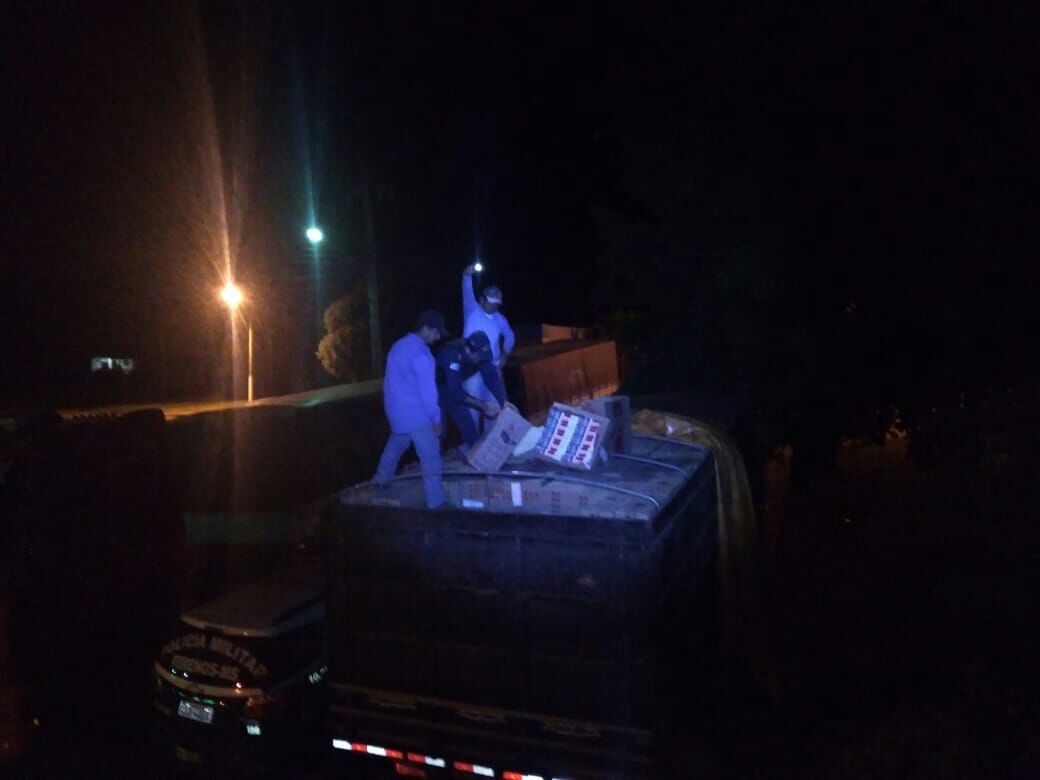 Outros usuários da via relataram que teria outra carreta Bitrem estacionada na beira da estrada e 5 quilômetros à frente, os policiais militares localizaram um caminhão trator tracionando e dois reboques com carga de cigarros oriundos do Paraguai.