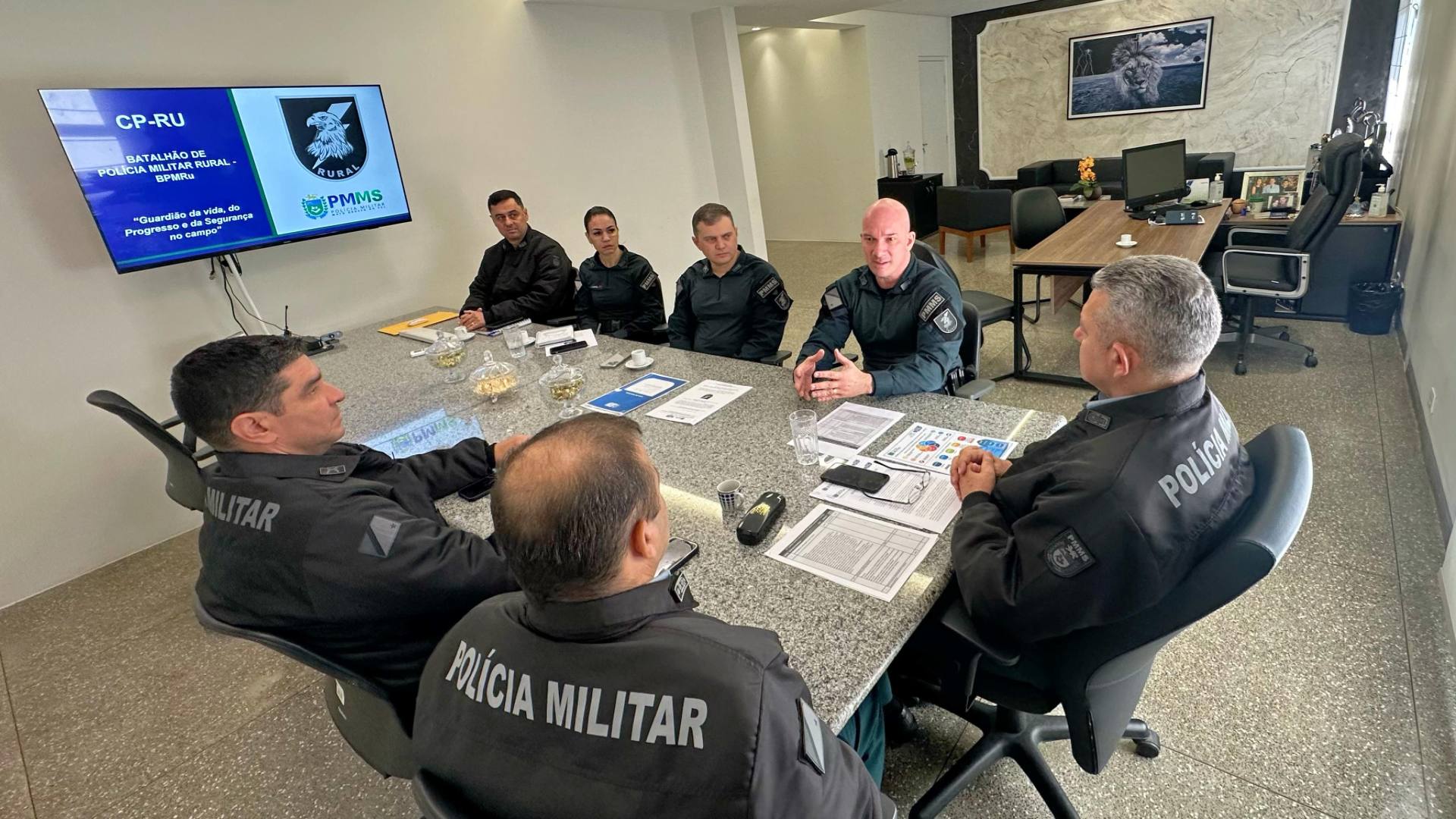 Também estiveram presentes na reunião o Subcomandante-Geral interino da PMMS, Coronel PM Nivaldo de Padua Mello, o Comandante do Policiamento Rural, Coronel PM Cleder Pereira da Silva, o Comandante do Batalhão de Polícia Militar Rural, Tenente-Coronel PM Maurício Pavão Flores e os Capitães PM Luiz Gustavo Morandi e Luana Costa.