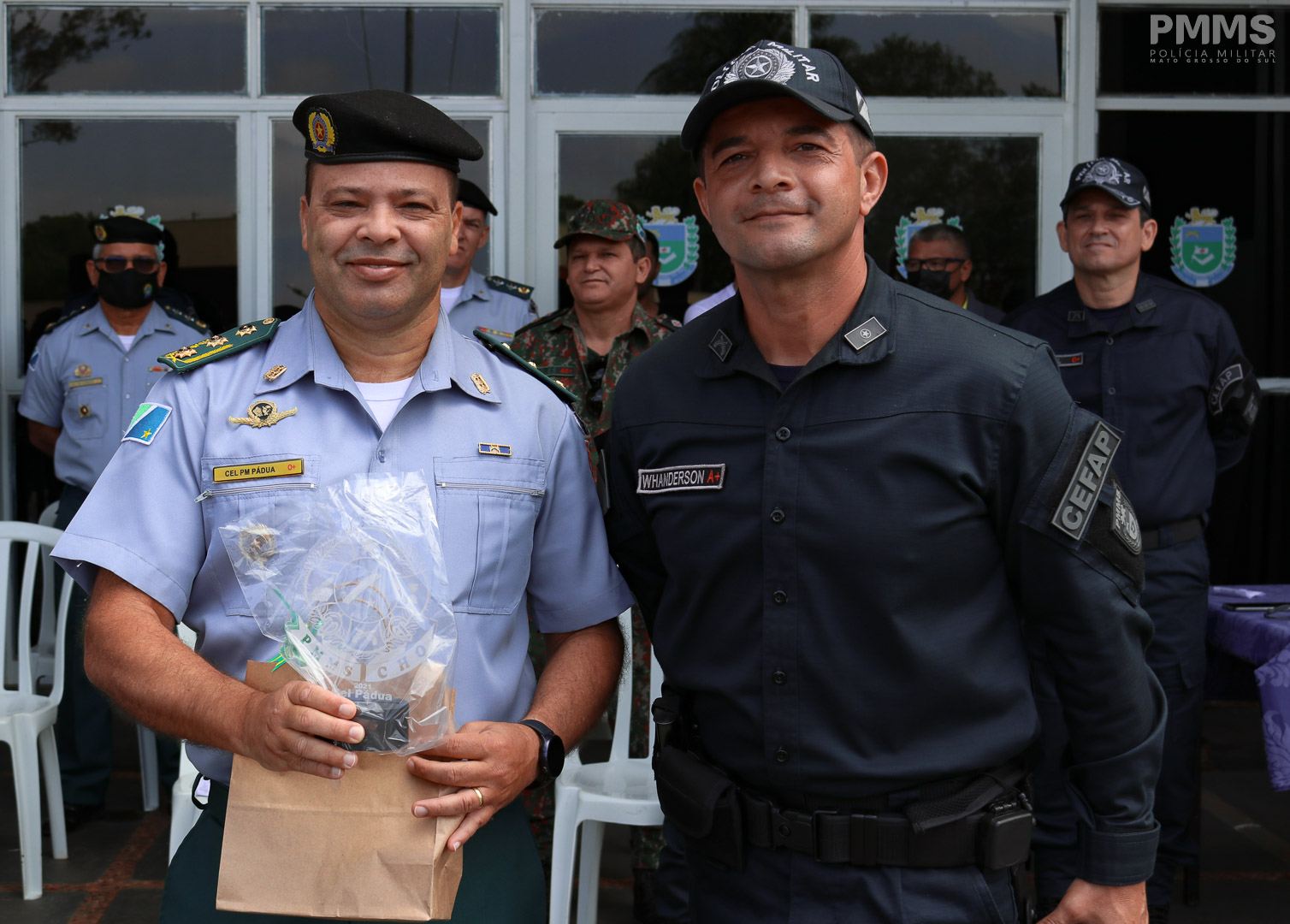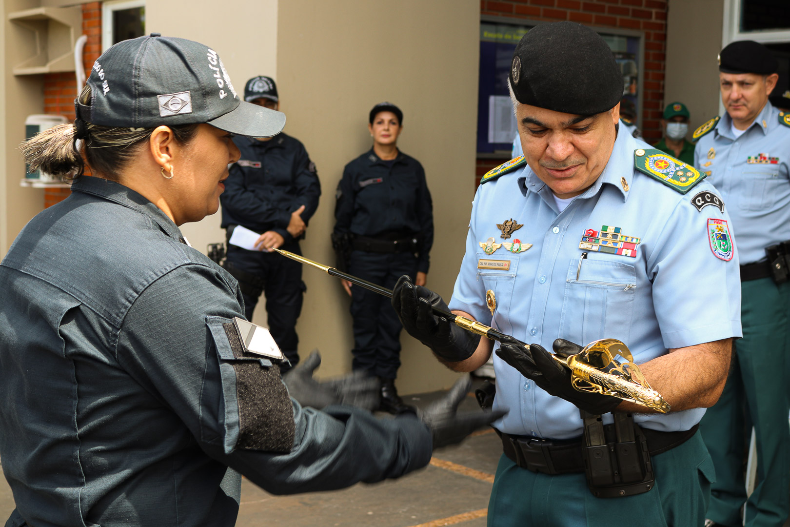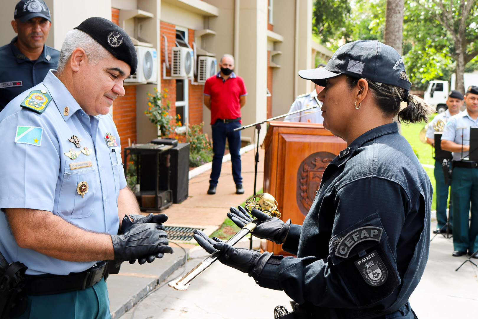 Campo Grande (MS) – Nesta sexta-feira (12.11.2021), durante a solenidade de apresentação da Canção do Curso de Habilitação de Oficiais – CHO, o Comandante-Geral da Polícia Militar de Mato Grosso do Sul, Coronel QOPM Marcos Paulo Gimenez, foi presenteado pelos Alunos-Oficiais do CHO com a Espada de Comandantes, que simboliza a liderança da Polícia Militar e seus policiais na defesa do Estado e resolução de conflitos.