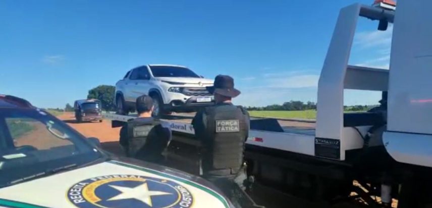 Durante a Operação denominada “Operação Hórus”, a Força Tática em conjunto com a Receita Federal de Mundo Novo, apreendeu um caminhão Mercedes Benz 1113, juntamente com um veículo de marca Fiat Toro, utilizado como batedor durante contrabando.