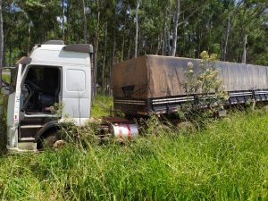 O condutor do caminhão, após 15 quilômetros de acompanhamento tático, abriu a porta e saltou com o veículo ainda em movimento, vindo a machucar o tornozelo direito, sendo capturado em seguida e o caminhão, atolar às margens da rodovia.