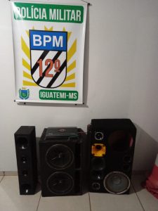 Iguatemi (MS) – Durante o final de semana (05 à 07/09), policiais militares lotados na 2ª Cia de Polícia Militar de Iguatemi, realizaram apreensão de 02 (duas) aparelhagens sonoras envolvidas em perturbação do sossego.
