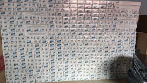 Durante buscas no interior do veículo, os policiais localizaram grande quantidade de cigarros de origem estrangeira os quais, após contabilizados, somaram 100 caixas de cigarros.