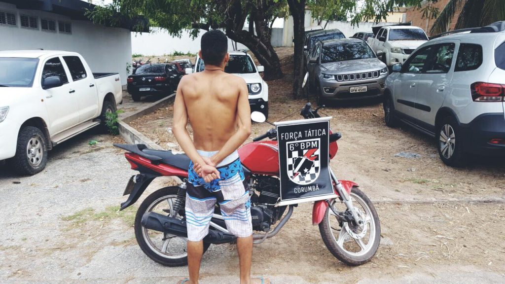 Na delegacia o autor confessou ter furtado uma motocicleta de cor vermelha na mesma manhã na Rua Ricardo Franco e que após fazer uma ligação direta na motocicleta, ele conduziu a mesma até o Bairro Nova Aliança em Ladário e escondeu dentro da casa de sua irmã. Confessou ainda que comercializa drogas em sua residência e que havia escondido a droga no buraco de uma parede de uma casa abandonada em frente a sua residência, e que iria vender a motocicleta a troco de droga para continuar seu comércio de entorpecentes.