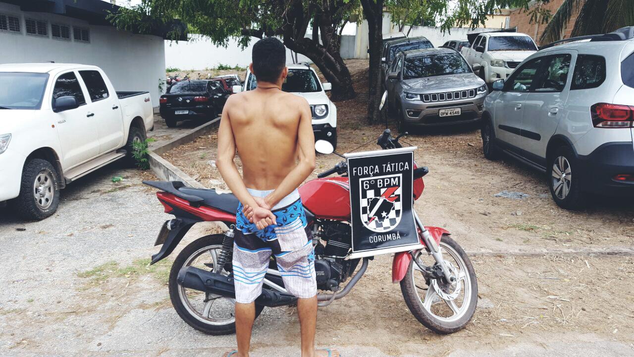 Corumbá (MS) Sábado (05/10) – A guarnição da Força Tática realizava rondas ostensivas e preventivas, quando avistou um indivíduo que possui passagens policiais em atitude suspeita por volta das 10h20 na Rua Funcionário da Mista, no bairro Vila Mamona.
