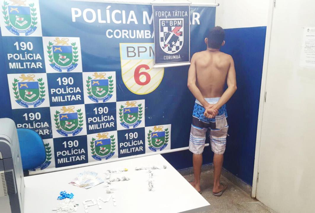 Na delegacia o autor confessou ter furtado uma motocicleta de cor vermelha na mesma manhã na Rua Ricardo Franco e que após fazer uma ligação direta na motocicleta, ele conduziu a mesma até o Bairro Nova Aliança em Ladário e escondeu dentro da casa de sua irmã. Confessou ainda que comercializa drogas em sua residência e que havia escondido a droga no buraco de uma parede de uma casa abandonada em frente a sua residência, e que iria vender a motocicleta a troco de droga para continuar seu comércio de entorpecentes.