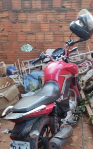 No mesmo momento a equipe da Polícia Civil de Ladário abordou o autor de 26 anos na Rua Theodomiro Serra/Oriental. Durante as diligências a equipe tomou conhecimento de uma residência em que os autores teriam ido logo após o roubo, Alameda no bairro Guaicurus e no local as equipes localizaram a motocicleta produto de roubo.
