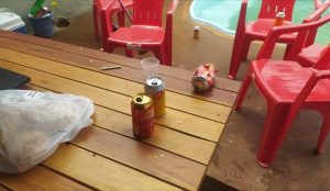 A Equipe acionou o conselho tutelar e juntamente se deslocaram até o local. Ao chegarem, visualizaram várias garrafas e latas de cerveja espalhadas, bem como várias pessoas consumindo bebida alcoólica. Dois menores de idade estavam bebendo cerveja, sendo que um deles estava no local desde o dia anterior. Durante buscas pelo local, foi localizado, dentro de um veículo, uma porção de maconha e petrechos para preparar cigarros da droga.