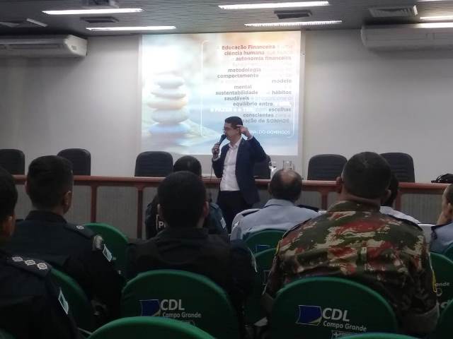 Campo Grande(MS) — A Polícia Militar de Mato Grosso do Sul pensando no bem estar do policial e continuando ciclo de capacitação continuada, promoveu na data de hoje (23/05) pela manhã palestra de educação financeira com John Wine voltada aos chefes, comandantes, diretores e representantes de todas as unidades da capital.