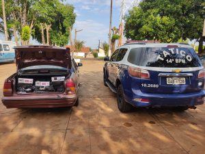 A equipe policial durante Policiamento ostensivo e preventivo avistou um veículo vermelho transitar em sentido contrário em atitude suspeita, com os vidros escuros e com suspensão baixa. Ao aborda-lo seu condutor e passageiro foram identificados e após revista veicular foi encontrado 06 caixas (300 pacotes) de cigarros e diversas caixas de acessórios para internet, assim como de fone de ouvidos, armas do tipo Airsoft e ventiladores. Foi lavrado o termo de apreensão de mercadorias, o qual foi entregue cópia aos autores. Os envolvidos foram orientados sobre seus direitos constitucionais e liberados, o veículo e as mercadorias foram encaminhados a SEDE do 14º Batalhão de Polícia Militar em Fátima do Sul-MS e posteriormente serão entregues na Receita Federal conforme agendamento do referido órgão.