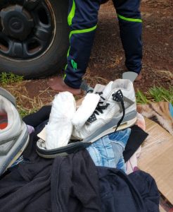 Durante a busca pessoal, foi encontrado dentro do solado de seu tênis uma certa quantidade de drogas, sendo 78 gramas de pasta base e 19 gramas de cocaína.