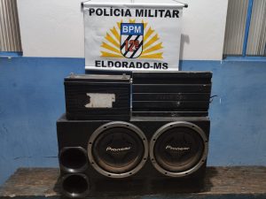 Eldorado (MS) – Durante final de semana (02 a 04/10), policiais militares lotados no 2º Pelotão de Polícia Militar de Eldorado, realizaram apreensão de 02 (duas) aparelhagens sonoras envolvida em perturbação do sossego.