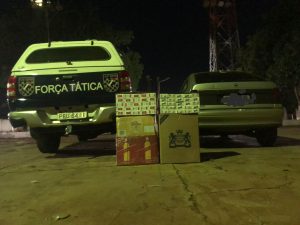 Fátima do Sul (MS): No início da noite de ontem (20.10) Policiais militares da Força Tática durante abordagem a veículos, apreenderam um veículo contendo cigarros e bebidas de origem estrangeira.