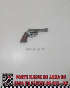 Fatima do Sul (MS) – Na tarde desse domingo (01/05), policiais militares da Força Tática prenderam uma pessoa por porte ilegal de arma de fogo de uso permitido.