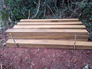 Em vistoria pelo local, foram encontradas, aproximadamente, 50 (cinquenta) pranchas de madeira da espécie Ipê.