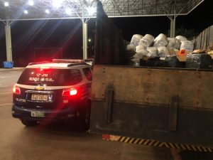 De imediato uma guarnição de serviço deslocou até o endereço indicado e deparou-se com um caminhão carregado com mercadorias de origem paraguaia. No local também havia um veículo Kombi, com placas de Rondonópolis/MT, carregado com 12 pneus da marca Sunset.