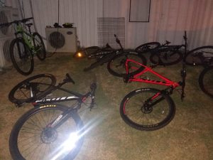 A porta do estabelecimento estava aberta e na área externa havia 06 (seis) bicicletas, 01 (um) pneu, 04 (quatro) bancos, 01 (um) inflador de pneu, 01 (um) par de led sinalizador e 01 (um) par de luvas de ciclista. Todo o material foi entregue ao responsável pelo estabelecimento, um homem de 26 (vinte e seis) anos, o qual relatou que as bicicletas que estavam sendo furtadas pertenciam a clientes e que também foram furtados dois aparelhos de celular.