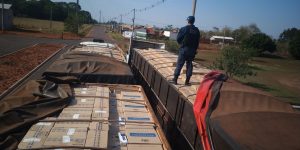 Naviraí (MS) – Na manhã desta sexta-feira (04/10), por volta das 07h, policiais militares lotados no 12º Batalhão de Polícia Militar de Naviraí, receberam informações do Departamento de Operações de Fronteira de que 02 (duas) carretas carregadas com produtos contrabandeados estariam entrando na cidade.