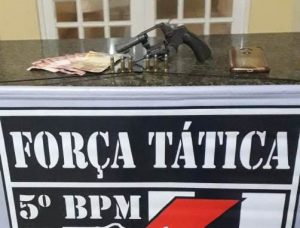 A guarnição de serviço da Força Tática realizava rondas na madrugada de ontem (22/12) na Rua Oscar Serrou Camy Bairro Flávio Garcia em Coxim, quando viu o piloto da Honda Fan de 19 anos que ao avistar a viatura dispensou algo na rua. Imediatamente os militares realizaram abordagem revista pessoal, sendo encontrado um revólver calibre 32 com 6 munições intactas e a quantia de R$ 150,00. Os policiais conseguiram encontrar uma trouxinha de maconha que o autor tentou jogar fora.
