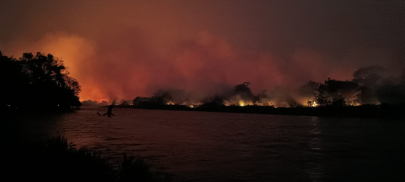 Durante aproximadamente quarenta minutos, os policiais enfrentaram condições adversas, com a fumaça e o fogo às margens do rio Miranda, até que conseguissem conduzir as embarcações para fora da área de risco, garantindo a segurança de todos.