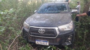 Corumbá(MS), 26/11(sexta-feira) – Na tarde desta quarta-feira(24/11), a guarnição de Patrulha Rural foi acionada para averiguar uma denúncia de roubo de duas camionetes, sendo uma Hilux prata, ano 2021, que teria sido furtada em Campo Grande, MS, e outra Hilux preta, ano 2018 roubada em São Paulo capital. Também uma moto, BMW, 1250 cc. Segundo informações, os autores tentaram passar com os veículos pela balsa da Estrada Parque, quando o funcionário da balsa suspeitou da ação e acionou a Polícia Rodoviária Federal. Esta pediu apoio à equipe de Patrulha Rural e à Polícia Civil, que se deslocaram prontamente. Após buscas na região, os veículos foram localizados na Estrada da Manga, no meio da mata fechada. Ao perceber a chegada da polícia, os autores se embrenharam mata adentro e não foram localizados.