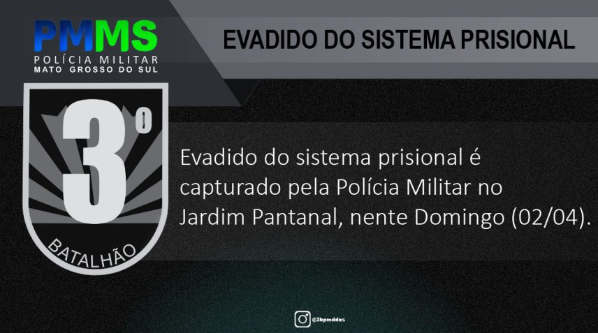 Os militares durante rondas no bairro Jardim Pantanal visualizaram um indivíduo e realizaram a abordagem. Durante checagem no sistema policial constatou-se que ele estava evadido do sistema prisional.