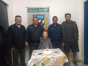 A mãe da garotinha, Sra. Fátima, que presta serviço no grupamento, relatou para o comandante da PM na cidade, Sargento PM Mauro, o desejo de sua filha de ter como presente de aniversário a oportunidade de conhecer os policiais militares e visitar a sede do grupamento da Polícia Militar na cidade. O comandante então reuniu a guarnição de serviço, Sargento PM Schoninger e Soldado PM Vicente, e o delegado Edgard Punsky, e recepcionaram Rayane com um bolo de aniversário.