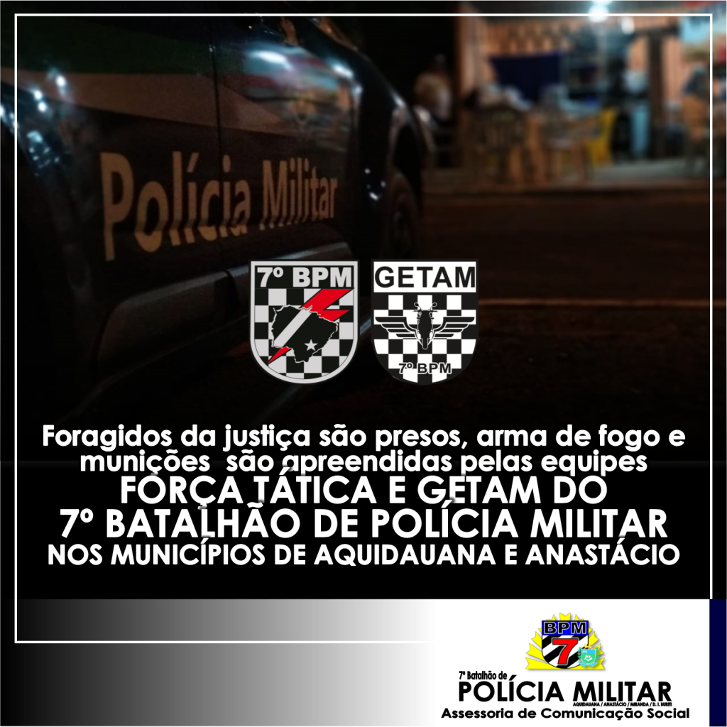 ‘Foragidos da Justiça’ são presos, Arma de fogo e munições são apreendidas em ações policiais militares realizadas em Aquidauana e Anastácio.