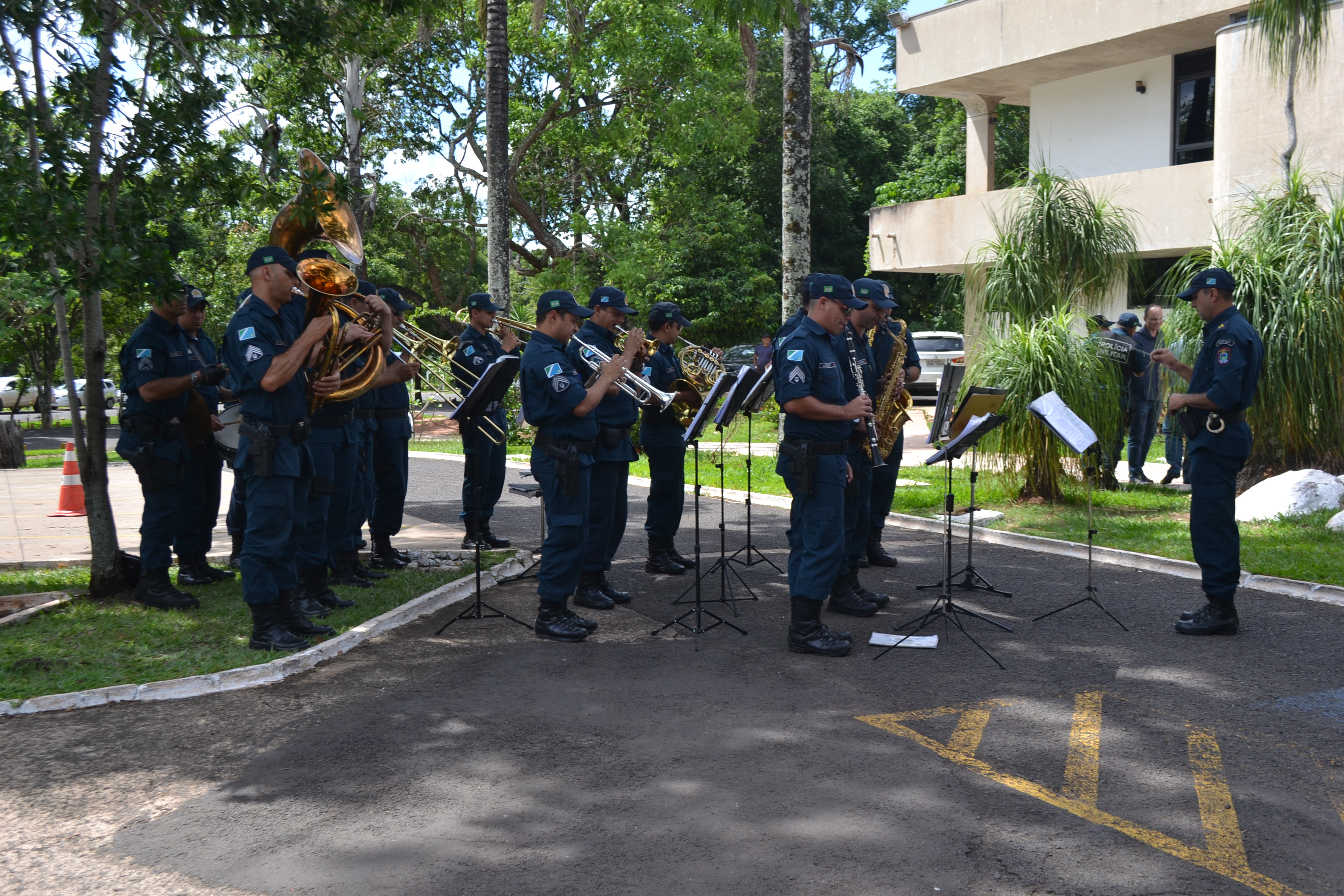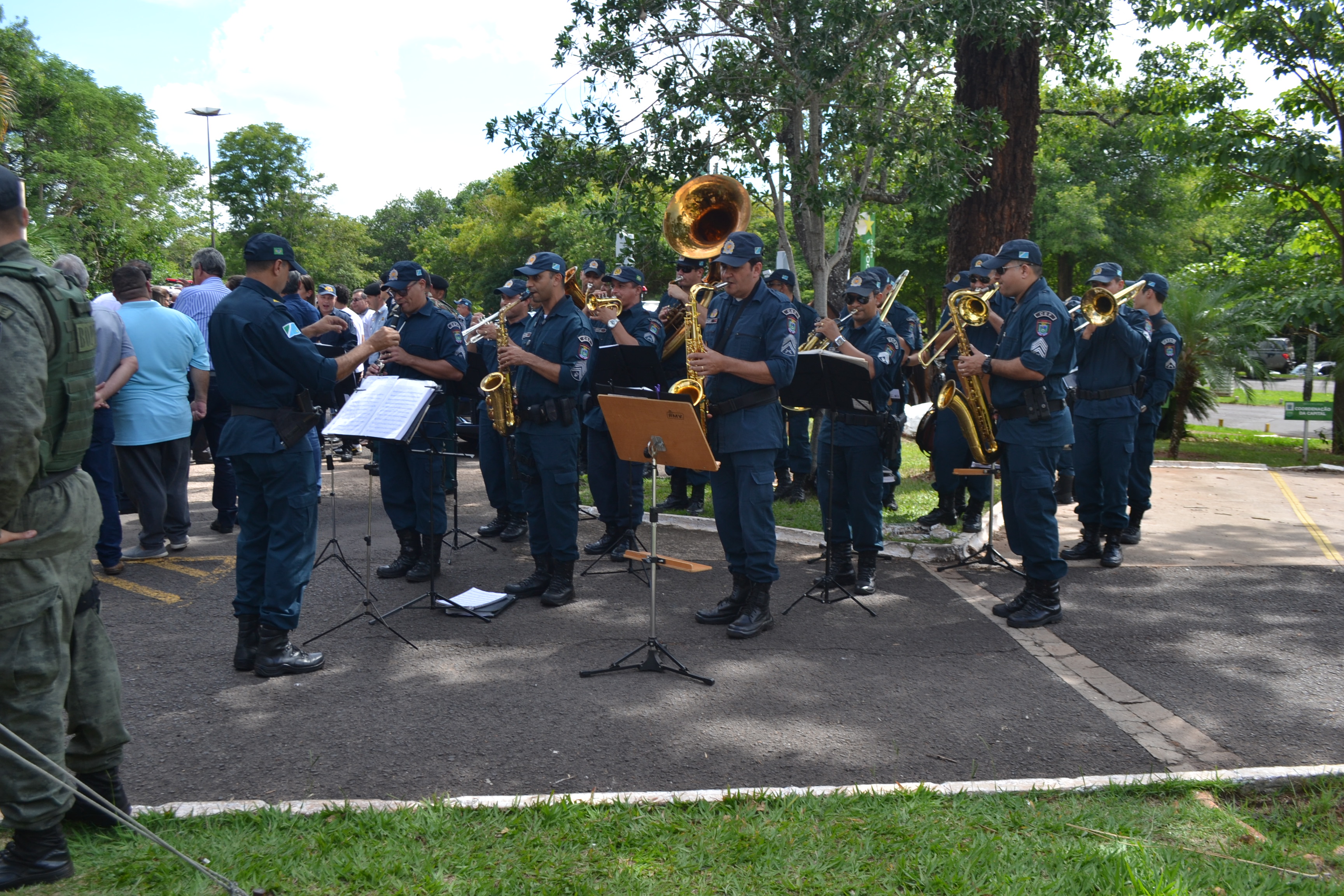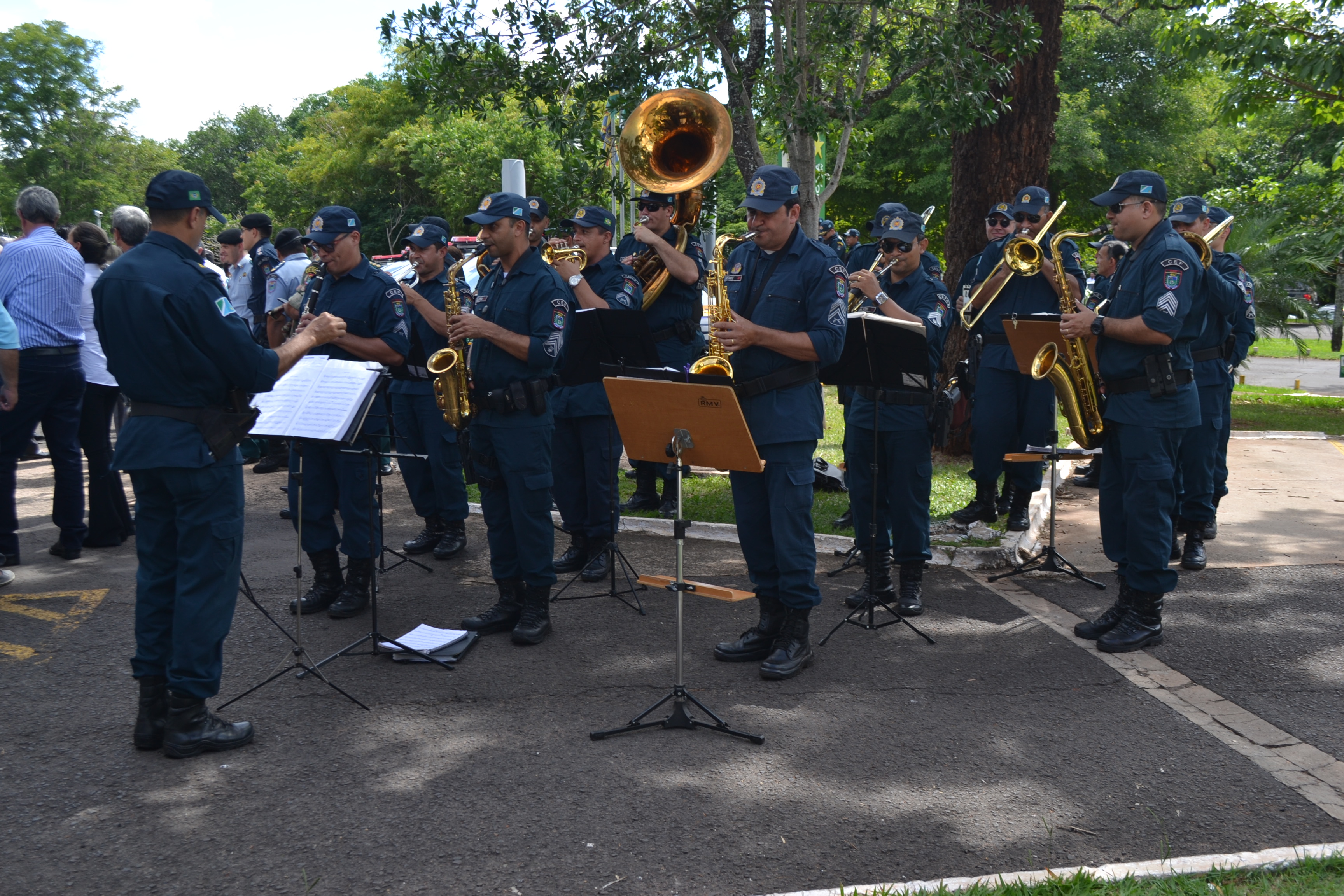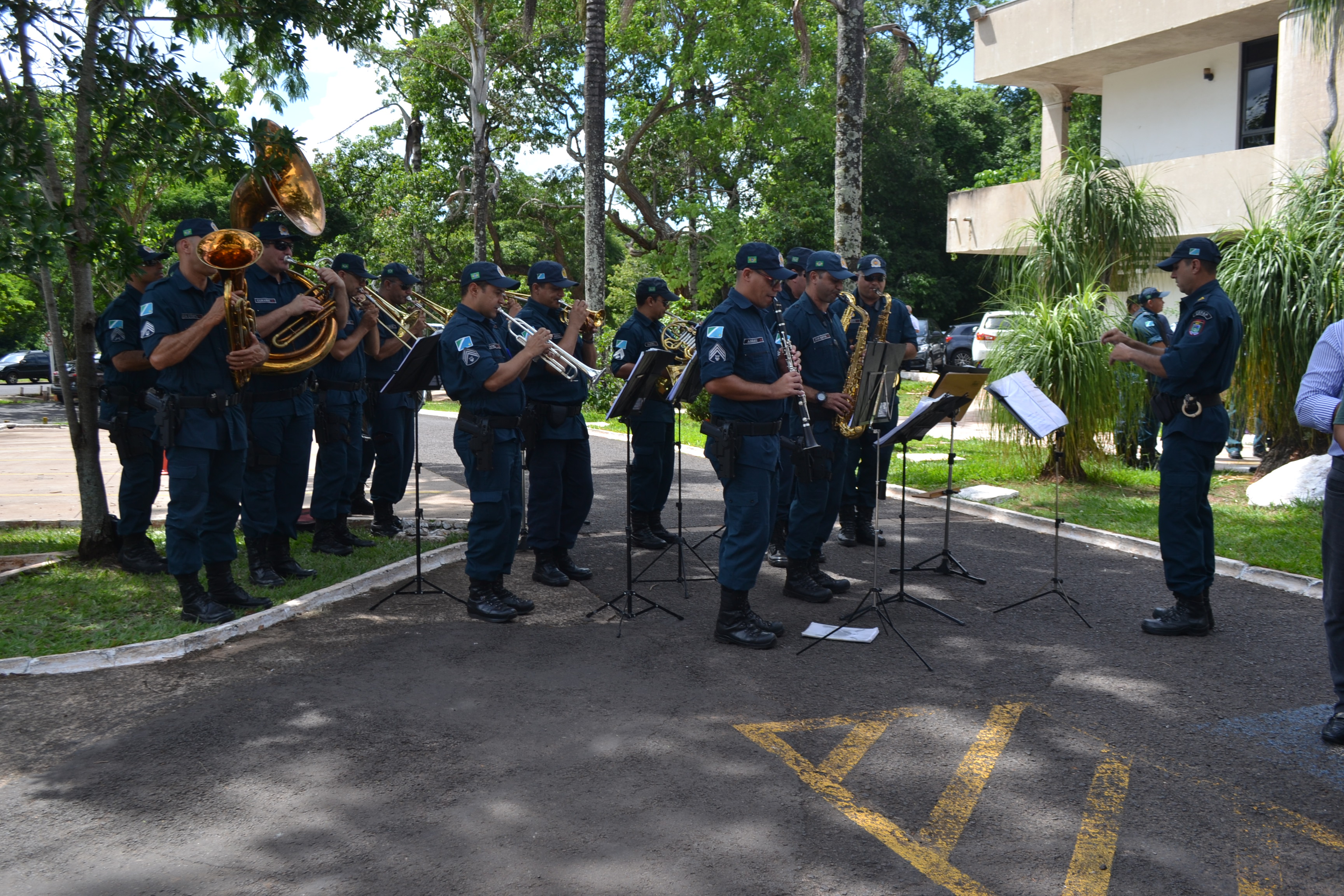 O Corpo Musical da PMMS esteve presente na solenidade bem representando a instituição com canções devidamente selecionadas para a ocasião, entre elas o Hino de Mato Grosso do Sul, composição de Jorge Antonio Siufi e Otávio Gonçalves Gomes.
