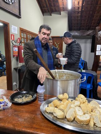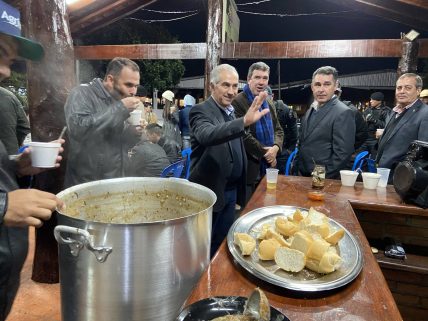 O governador agradeceu a receptividade dos policiais e degustou com toda a sua equipe o cardápio raiz da casa, que aqueceu toda a comitiva numa noite com temperaturas abaixo de 10 graus.