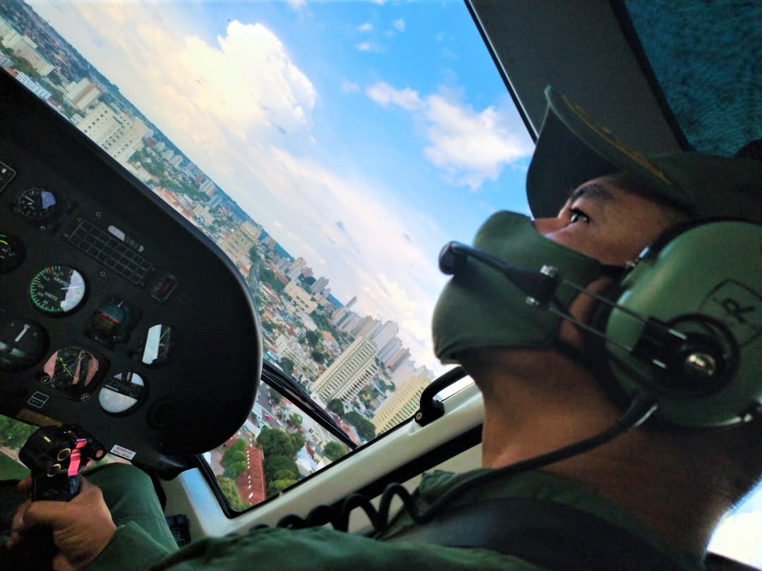 Campo Grande (MS) – A equipe do Grupo de Patrulhamento Aéreo da PMMS – GPA, realizou o policiamento na capital de Mato Grosso do Sul na última sexta-feira (04/12), acompanhado do Comandante do Comando de Policiamento Metropolitano, Coronel PM André Henrique de Deus Macedo.