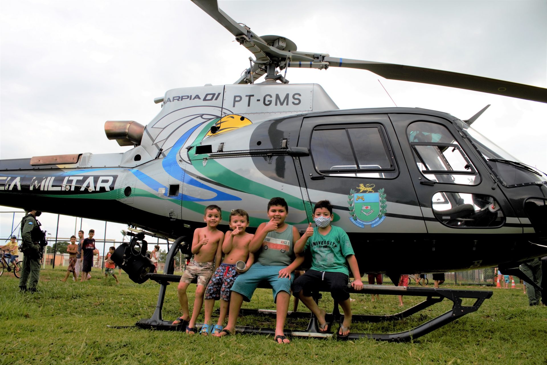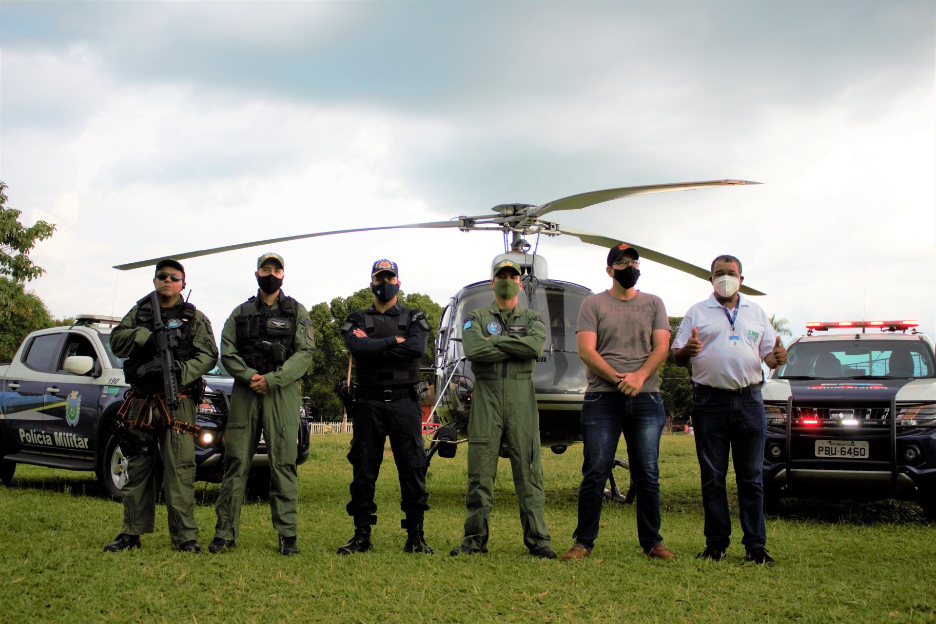 A aeronave posou no Bairro Coophavila II e os Comandantes encontraram os policiais militares que atuam na região. Os moradores que lá estavam parabenizaram os policiais militares pelo trabalho realizado através do policiamento ostensivo e preventivo.