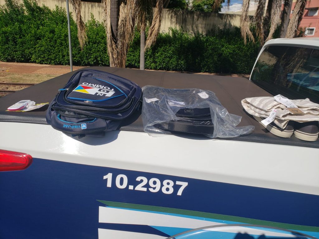 Ao trafegar pela Rua Dom Aquino durante o patrulhamento, os policiais militares foram acionados pelo funcionário de uma loja de departamento noticiando que o indivíduo, 35 anos, havia furtado algumas peças de roupa e um par de calçados, em seguida ele teria evadido do local.