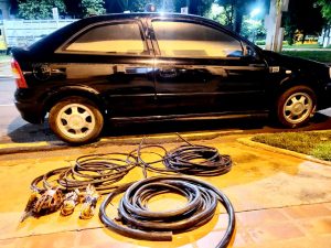 Nova Andradina (MS) – O 8° Batalhão de Polícia Militar “O Guardião do Vale do Ivinhema” através da equipe de Força Tática prendeu na manhã de domingo (13) um homem de 36 anos após furtar 56 quilos de fiação de cobre e elétricos de uma usina da região. A equipe policial empenhada na Operação Hórus do programa VIGIA sob o  Comando de Policiamento de Área – CPA-1 do, realizava o policiamento ostensivo na rodovia MS-276 próximo ao município de Batayporã saída para Anaurilândia sentido divisa de SP/PR,  quando avistou um veículo GM/Astra preto com placa de Tapejara -PR, onde foi abordado e solicitado a documentação do veículo e que abrisse o porta malas. No momento da abordagem o condutor estava muito nervoso e não sabia explicar para onde estava indo, bem como itinerário que havia seguido.