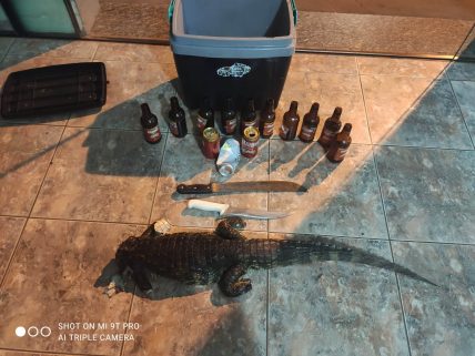 Nova Andradina (MS) – O 8º Batalhão de Nova Andradina, através da equipe de Radiopatrulha, prendeu na noite de quinta-feira (16) um homem de 37 anos após dirigir embriagado, causar acidente e transportar um Jacaré morto no porta malas em Nova Andradina.
