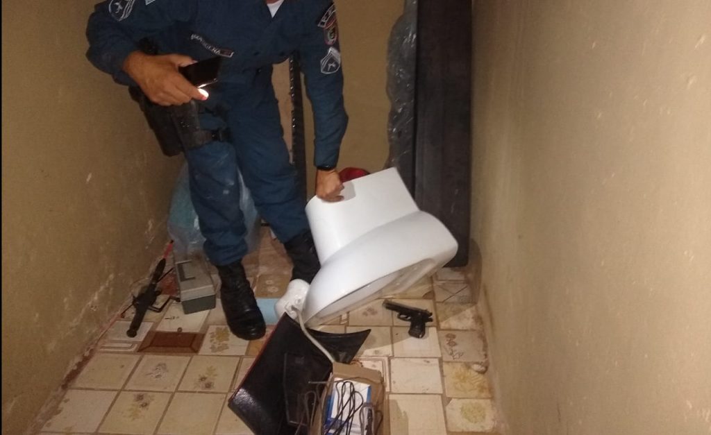 Armamento localizado escondido embaixo de um vaso sanitário.