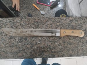 Na tarde de hoje (23) A Policia Militar de Bonito foi acionada pelo 190 pela testemunha que denunciava uma briga entre dois indivíduos e que um deles portava um facão e ameaçava o outro. Que a policia militar chegou no local e ambulância foi acionada para socorrer a vítima que estava em estado grave, com um corte da testa ao queixo ocasionado por um golpe de facão. O autor já não se encontrava no local porem com as informações de testemunhas a Policia Militar fez diligências e conseguiu chegar até a casa do indivíduo suspeito, no momento o autor negou o crime porém suas mãos estavam sujas de sangue e não soube dizer o motivo, a equipe da PM fez buscas e foi encontrado em sua residencia o facão que seria a arma do crime, após isso, o autor confessou ter dado o golpe de facão na cabeça da vítima devido a uma briga que ambos tiveram no dia anterior. Que a vítima esteve sob cuidados médicos no hospital e o autor e arma foram entregues na delegacia da cidade.