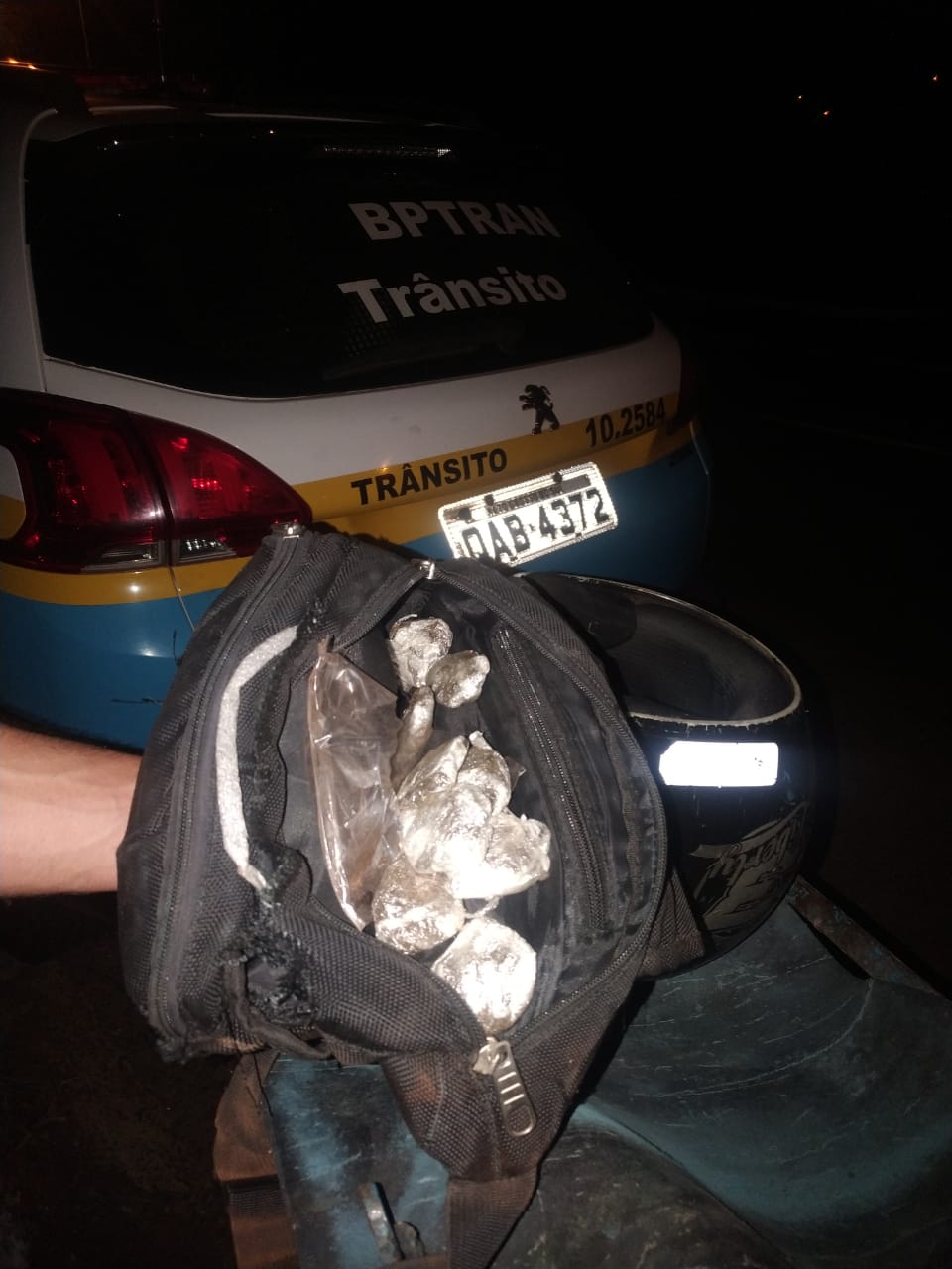 Campo Grande (MS) – O Batalhão de Polícia Militar de Trânsito – BPMTran prendeu na noite de hoje (27/01) um jovem de 20 anos que possivelmente estava fazendo entrega  através do “Disk Drogas”. Que durante a entrega, trafegando pela rua Thirson de Almeida, Conjunto Aero Rancho, o mesmo fez um desvio direcional chocando sua motocicleta na guia do meio fio e no poste de concreto da grade de proteção  sofrendo um acidente de trânsito.