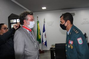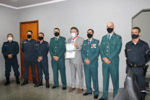 Três Lagoas – MS, no dia 10 de novembro, o Tenente Coronel Paulo Ribeiro dos Santos, Comandante do 2º Batalhão de Polícia Militar, realiza entrega da Medalha do Mérito ao Excelentíssimo Juiz de Direito: Rodrigo Pedrini Marcos.