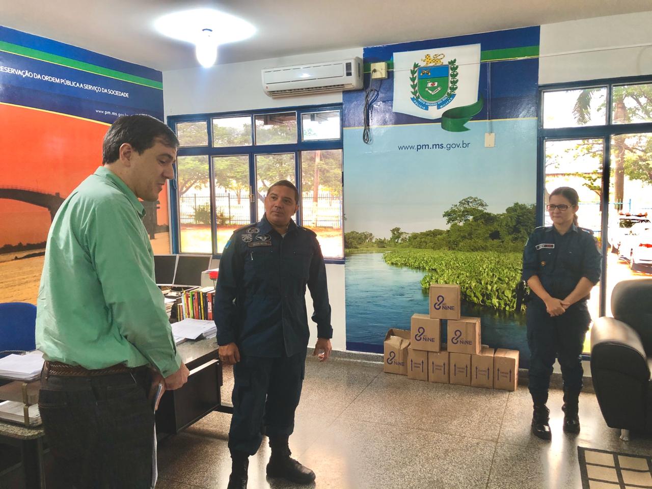 Corumbá (MS) – A Polícia Militar de Corumbá recebeu nesta manhã de terça-feira (07/04), a doação de 50 litros de álcool 70 da mineradora Vale, que se sensibilizaram com a necessidade de proteção dos policiais militares e com a higienização dos seus equipamentos e realizaram a doação, representada pelo diretor das relações institucionais da Vale Rodrigo Viana Mello.