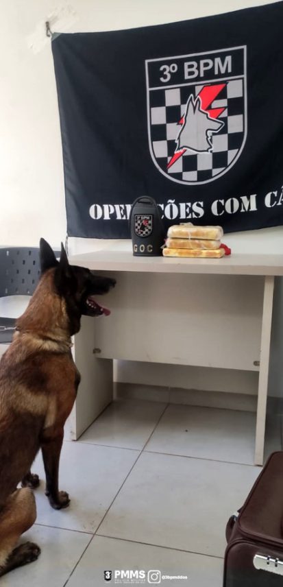 O Grupamento de Operações com Cães foi acionado sob denúncia de uma possível situação de tráfico de drogas, e realizou a abordagem do ônibus que vinha da cidade de Ponta Porã com destino a Dourados. Durante buscas no bagageiro, foram encontradas malas com peso fora do normal, em seguida foi empregado o cão de faro, e ele indicou a presença de substância entorpecente na mala da referida mulher.