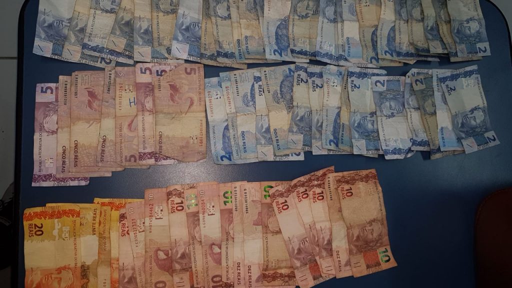Os dois foram alcançados e submetidos a busca pessoal, sendo localizado na bolsa da mulher, além dos seus documentos pessoais, diversas cédulas de dinheiro e algumas moedas. Próximo aos abordados, a equipe localizou ainda 05 (cinco) porções de pasta base de cocaína.
