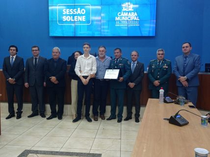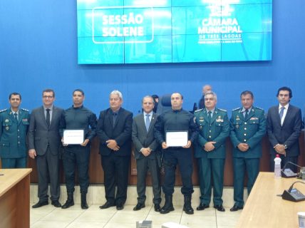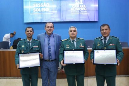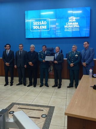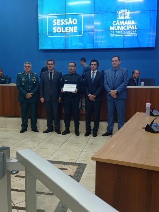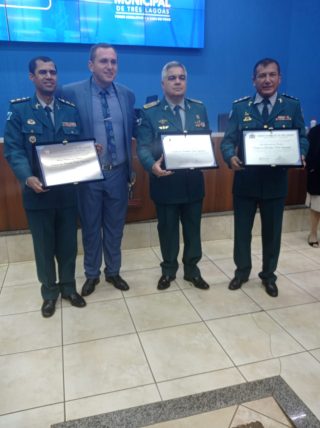 Sexta-feira ( 03/06/2022). Nesta noite, na Câmara Municipal de Três Lagoas, em uma sessão solene, o Excelentíssimo Comandante Geral da PMMS Cel QOPM Marcos Paulo Gimenez, o Comandante do CPA-2 Cel QOPM Gil Alexandre da Rocha e o Comandante do 2º BPM TC QOPM Paulo Ribeiro dos Santos foram homenageados e receberam das mãos das autoridades presentes o Título de Cidadão Trêslagoense, concedido pelo Legislativo Municipal.